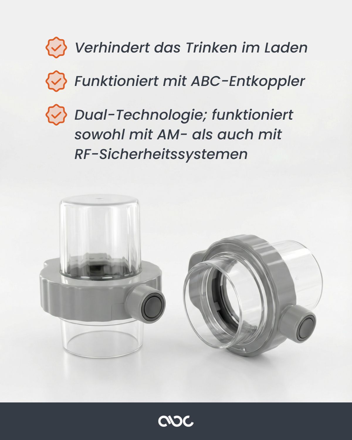 Der ABC EasiCap ist ein hochmodernes Zubehör zur Diebstahlprävention, das speziell entwickelt wurde, um Diebstähle von hochwertigen Flaschenwaren wie Spirituosen, Weinen und Spezialölen im Einzelhandel zu bekämpfen.